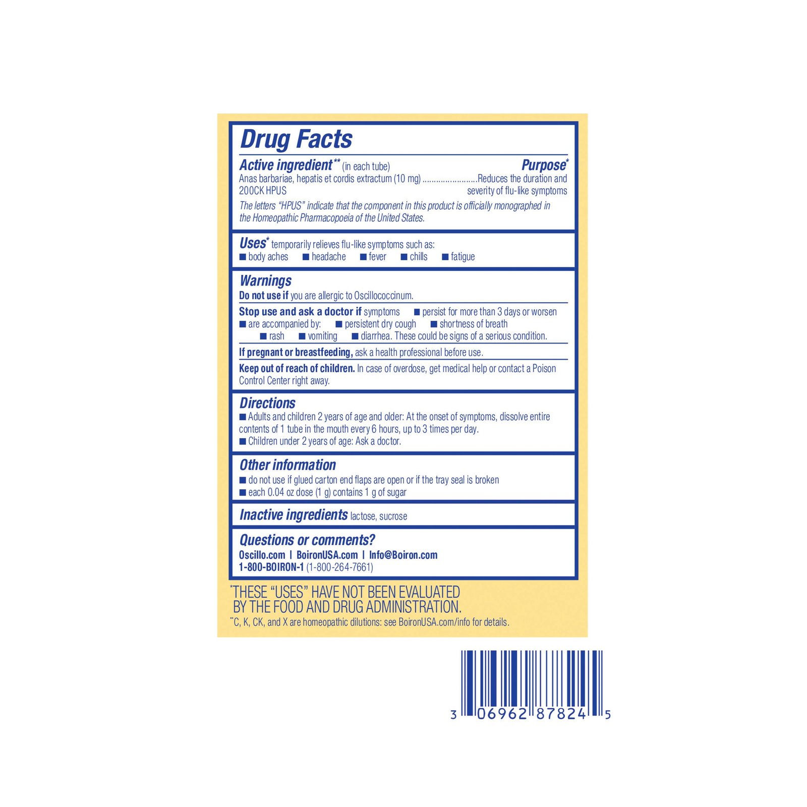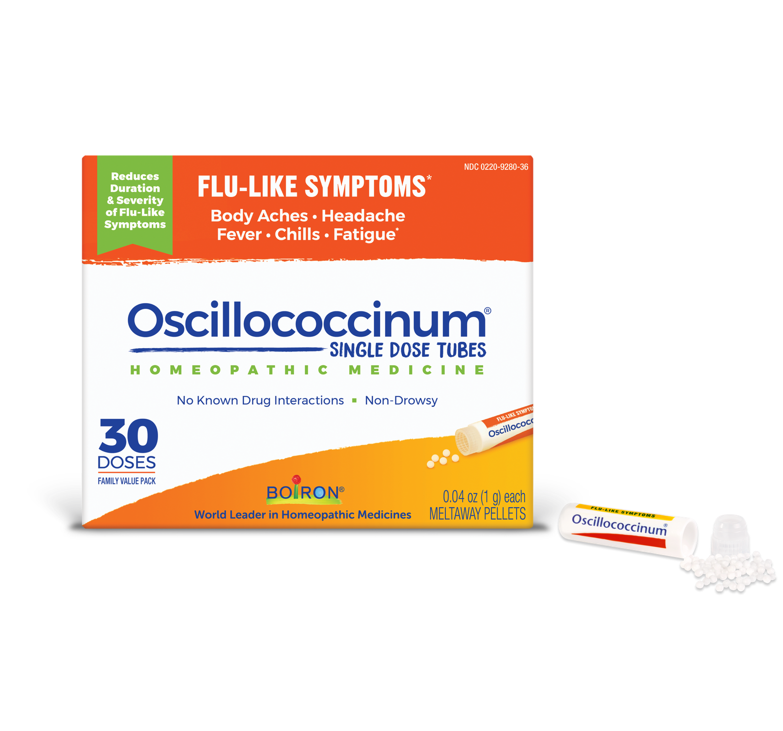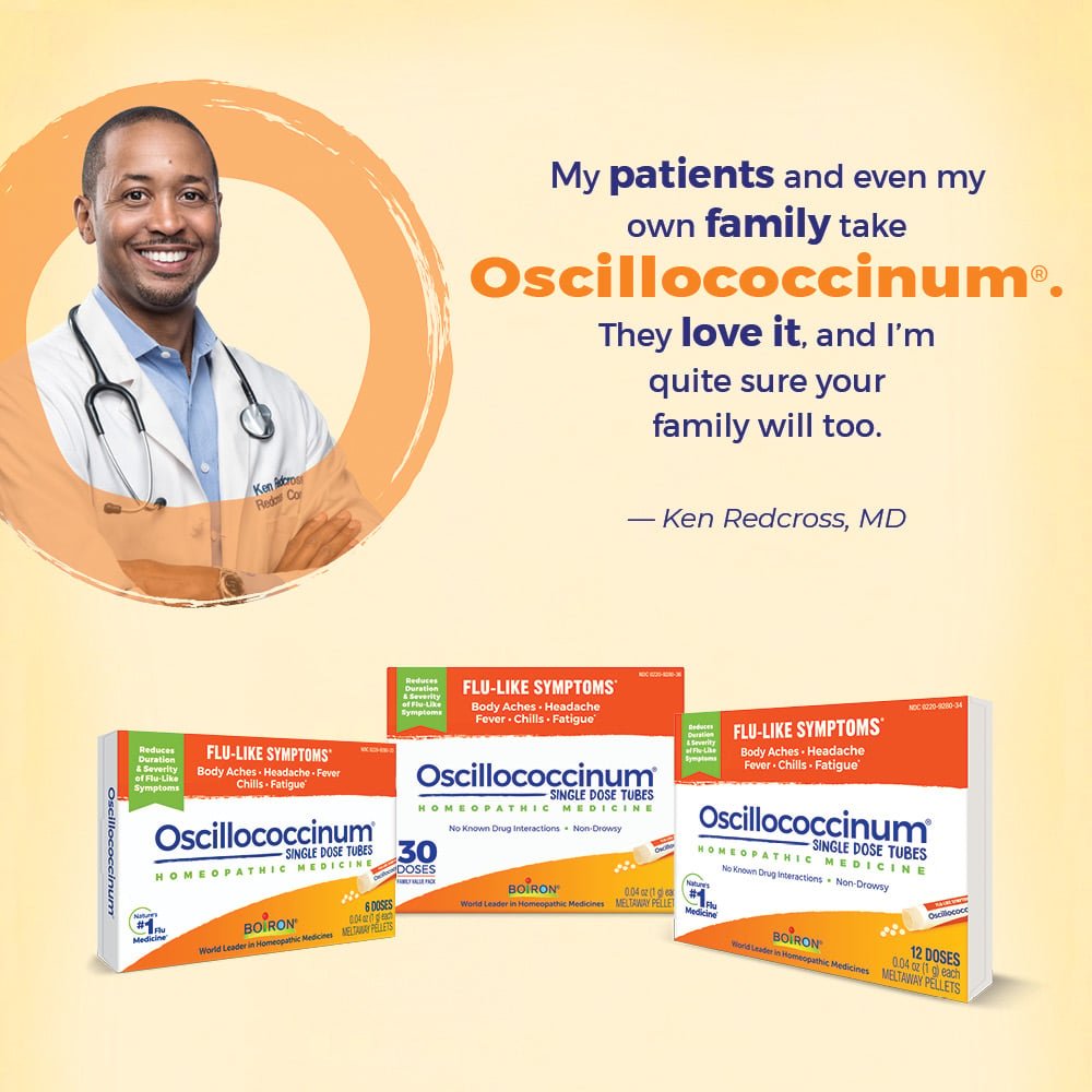 The moment you feel achy or run down, reach for Boiron Oscillococcinum to help you feel like yourself again. Trusted as Nature’s #1 flu medicine, Oscillococcinum has been shown in clinical studies to reduce the duration and severity of flu-like symptoms including body aches, headache, fever, chills, and fatigue. This easy-to-take homeopathic medicine features convenient single-dose tubes of meltaway pellets that dissolve quickly in the mouth, perfect for use at home or on the go. Recommended for adults and children ages 2 and up, Oscillococcinum is used in more than 50 countries—including France, where it has been the overall best-selling flu medicine for almost 80 years. Non-drowsy and non-habit forming, it has no known interactions with other medications or supplements and won’t mask symptoms of a more serious condition. Free from artificial sweeteners, flavors, colors, and preservatives, Oscillococcinum is HSA and FSA eligible and available over the counter in boxes of 6, 12, or 30 doses.