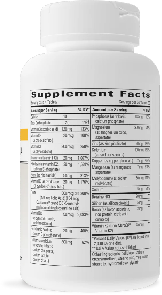 OsteoPrime® Ultra is a scientifically formulated blend developed in collaboration with Dr. Alan Gaby, a renowned expert in bone health. This advanced supplement includes 24 essential vitamins, trace minerals, and key nutrients to support and maintain healthy bones and bone structure. A standout feature is its inclusion of vitamin K2, a highly bioavailable form that maintains relatively constant levels in the blood, unlike vitamin K1, thereby enhancing calcium absorption and bone-building functions. With a combination of five forms of calcium, along with magnesium, zinc, and other supportive nutrients, OsteoPrime® Ultra offers a comprehensive approach to bone health, particularly beneficial for individuals during and after menopause.