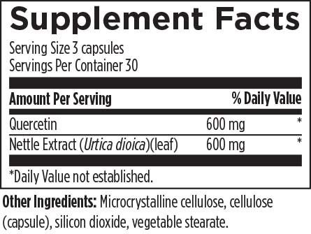Quercetin + Nettles combines 600 mg of quercetin and 600 mg of nettles, two potent plant extracts known for their ability to support the immune system and encourage the body’s natural inflammatory response when exposed to environmental challenges.