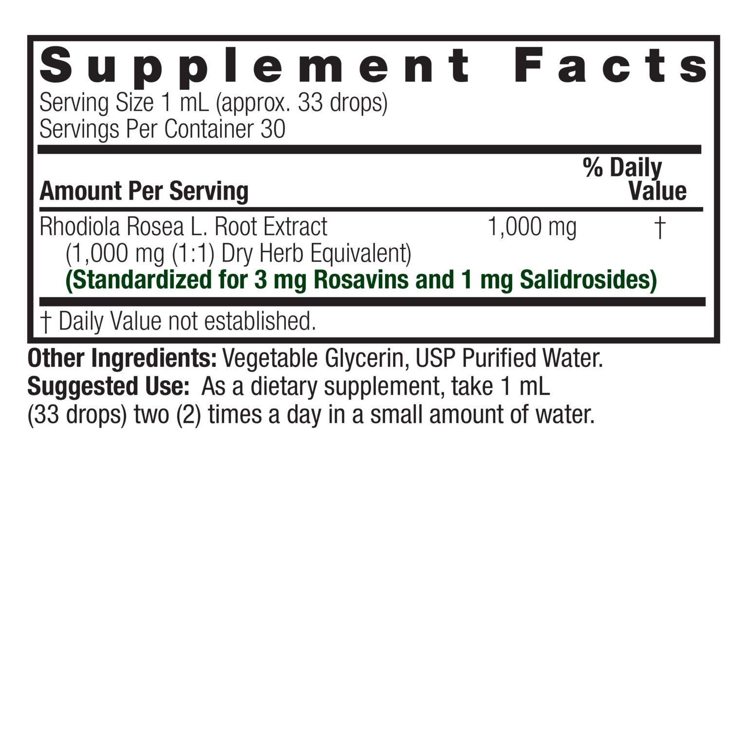 Rhodiola Root 1oz Alcohol-Free is a powerful adaptogen known for its ability to help the body respond to stress, enhancing mental and physical resilience. Standardized for 3mg rosavins and 1mg salidrosides, this alcohol-free extract ensures maximum potency with every drop. Perfect for those looking to support their stress response and promote overall vitality, this formula provides a 15-day supply of focused, balanced energy.